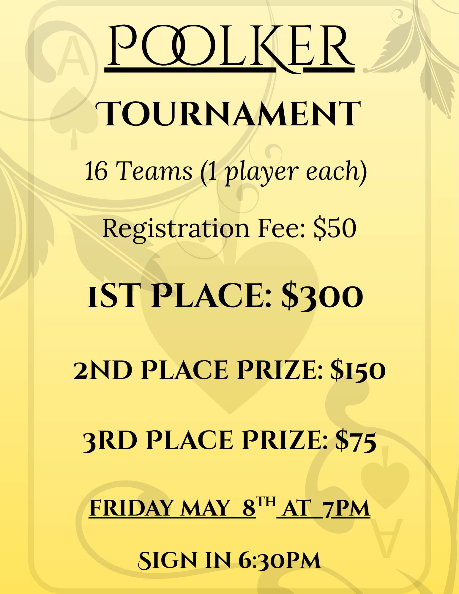 Cash only, limited space available.